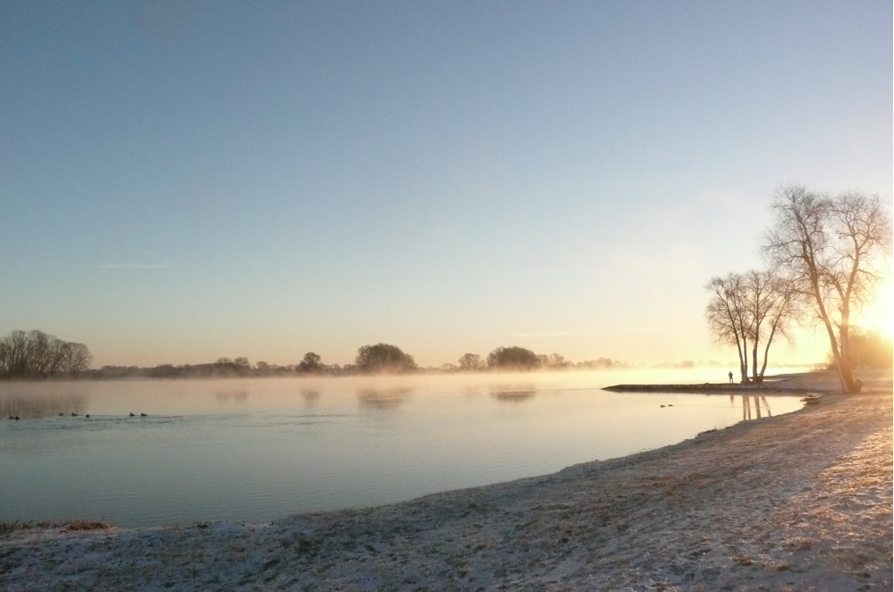 Sonnenaufgang am Elbufer bei klirrender Kälte