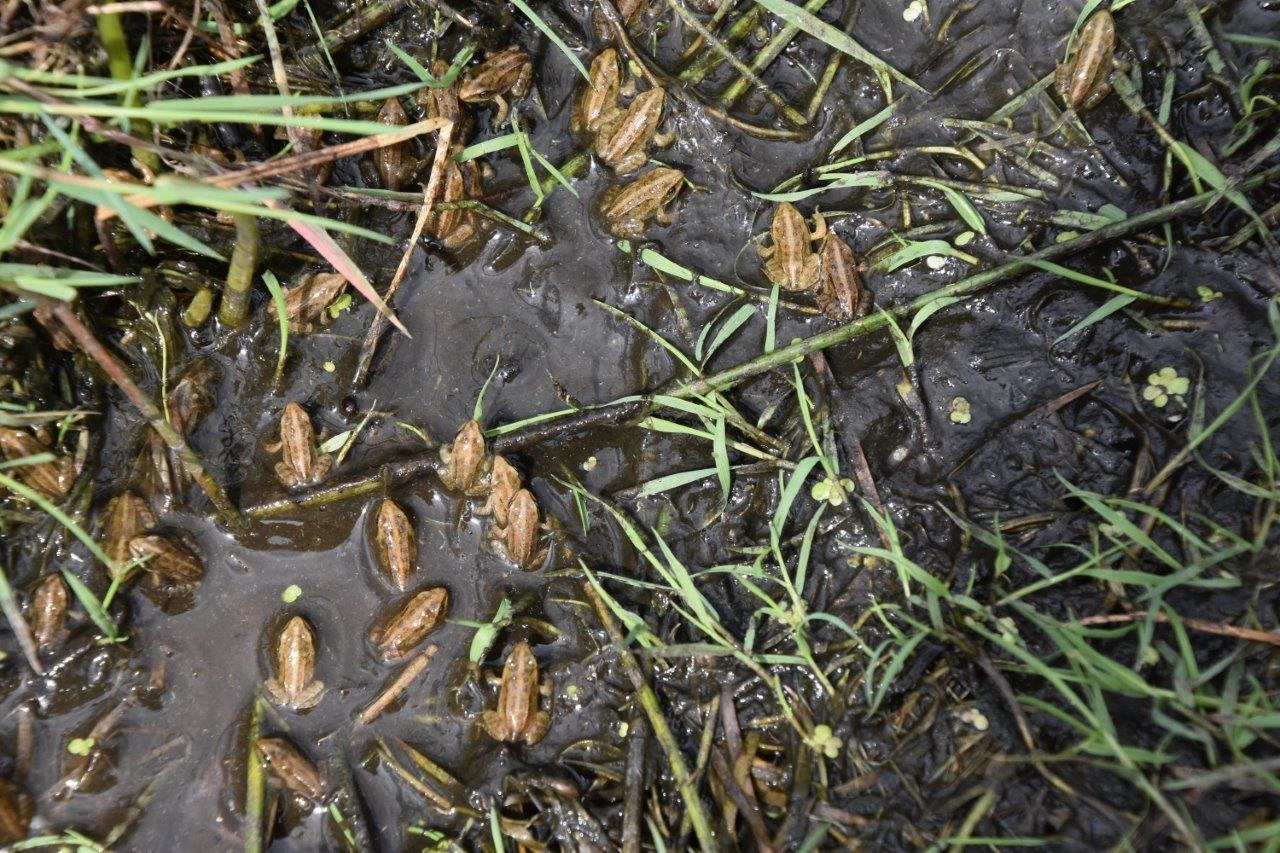 Auf Dauer kann der Moorfrosch jedoch nur erhalten werden, wenn ihm genügend große und gut vernetzte, qualitativ hochwertige Lebensräume zur Verfügung stehen, in denen sich die Art wieder natürlich vermehren und dann hoffentlich auch folgende Dürreperioden ohne direkte Hilfe überstehen kann.