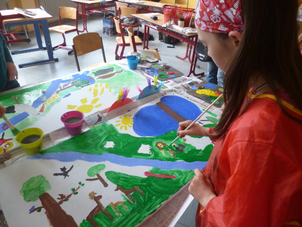 Junior-Ranger malen Bilder für den Bahnhof Brahlstorf