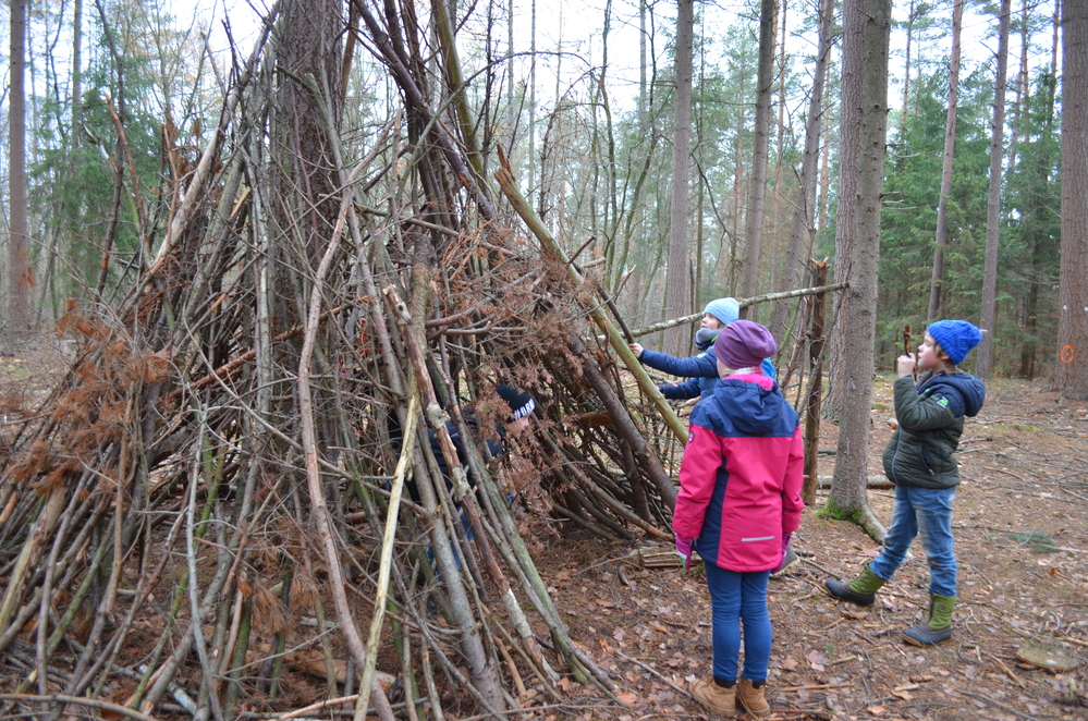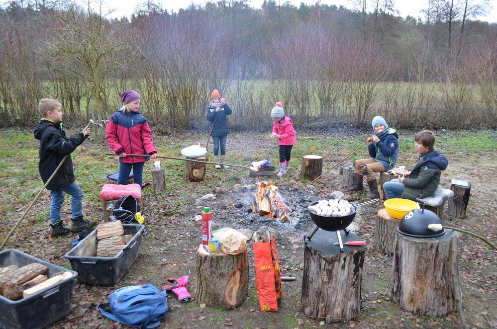 Im Wald der Göhrde konnten sie sich nun intensiv mit dem Thema Wald beschäftigten. Sie suchten Wege aus dem Waldlabyrinth, stempelten Briefe im Hirschkäfer-Postamt ab, ließen sich Geschichten im „Wald-Kino“ erzählen und saßen zum Abschluss mit Kinderpunsch, Stockbrot und Würstchen gemütlich am Lagerfeuer zusammen.