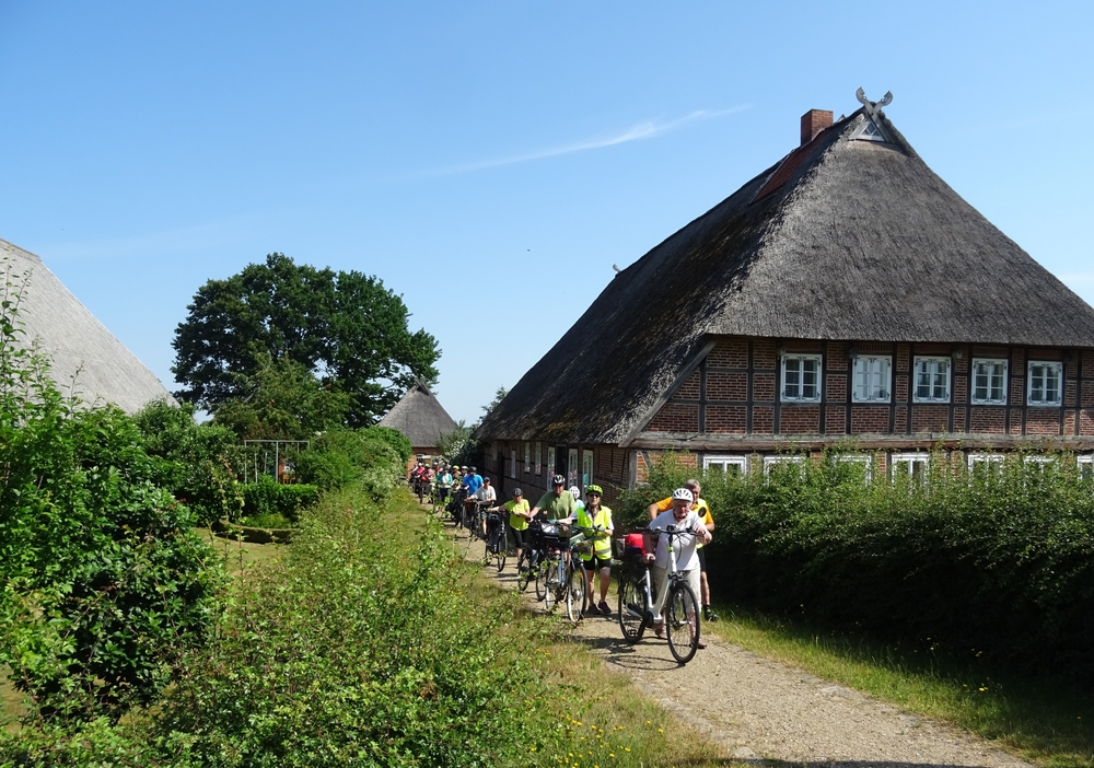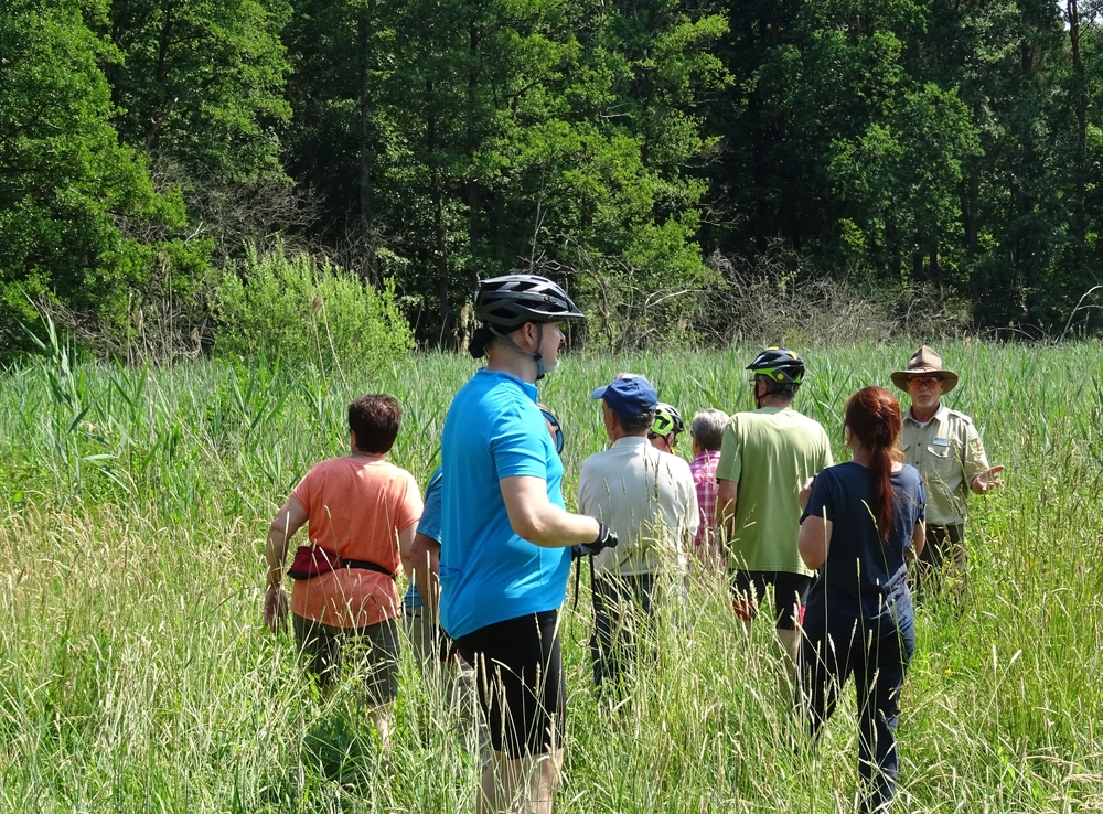 Rund 25 Teilnehmer*innen schwangen sich am Sonntag, den 18. Juni, im Rahmen des Langen Tages der StadtNatur Hamburg auf ihre Drahtesel, um den nördlichen Teil des bundesländerübergreifenden UNESCO-Biosphärenreservats Flusslandschaft Elbe zu erkunden.