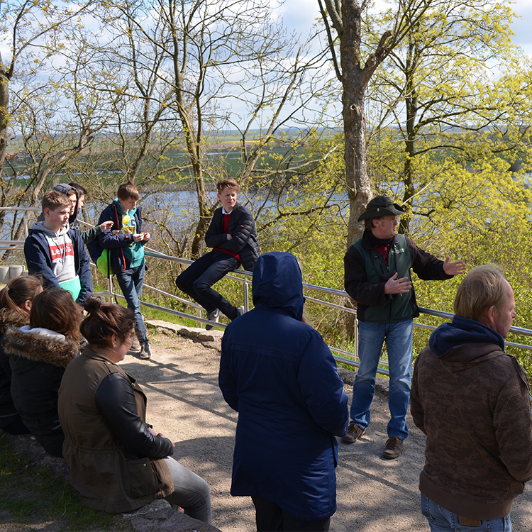 Der zertifizierte Natur- und Landschaftsführer Uwe Kühn zeigt den Junior-Rangern aus Marienau die Elbtalaue.