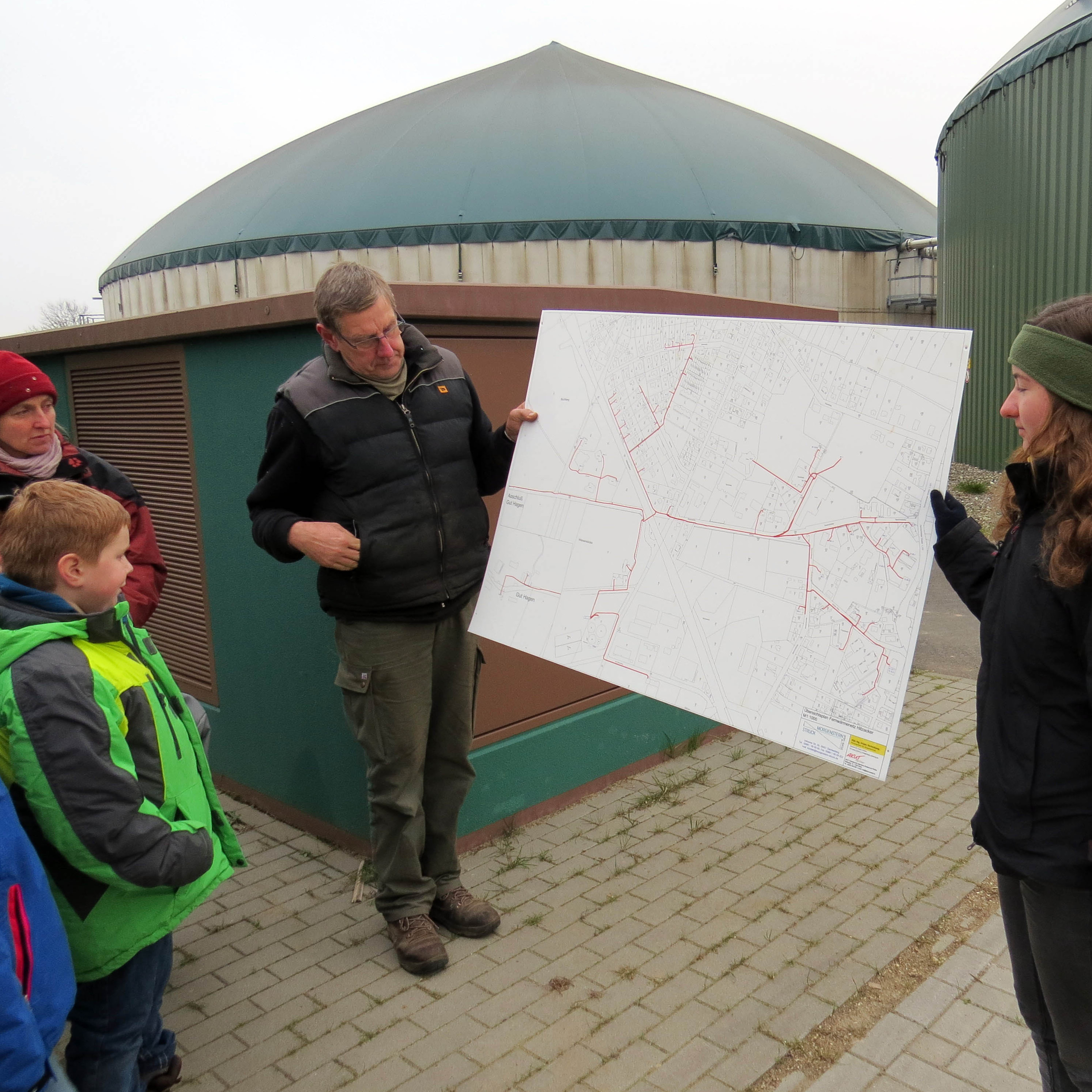 Krönender Abschluss war der Besuch der nicht weit von der Grundschule entfernt liegenden Biogasanlage. Morgens war es in der Schule ganz kalt gewesen, da etwas mit der Heizungstechnik nicht stimmte. Nachmittags erfuhren die Kinder dann, dass die Wärme aus der Biogasanlage kommt, die Technik in der Schule allerdings gestreikt hatte. Was eine Biogasanlage sonst noch alles kann, wie viel Mais und Gülle sie benötigt um Strom zu erzeugen und wie genau sie funktioniert, konnten die Kinder dann direkt vor Ort erfahren.