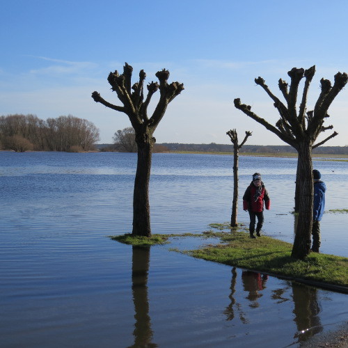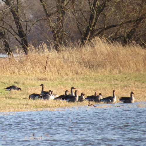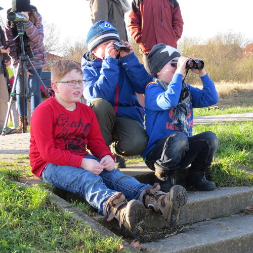 Bevor es wieder nachhause ging, warfen die Kinder einen Blick über den Deich und konnten nun die Vögel bei Hochwasser live in ihrem Lebensbereich beobachten.