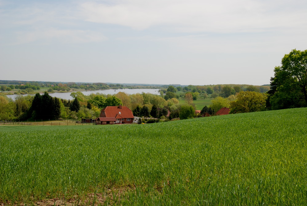 Einige Kilometer flussaufwärts erheben sich inmitten der Talaue zwei Geestinseln. Während die Langendorfer Geestinsel mit ca. 25 m Höhendifferenz und auf Grund ihrer Großflächigkeit weniger auffällig ist, erhebt sich der der sehr markante Höhbeck bis 60 m hoch über die Elbniederung hinaus. Es sind inselartige Reste einer eiszeitlichen Grundmoräne, die im Urstromtal der Elbe verblieben sind.