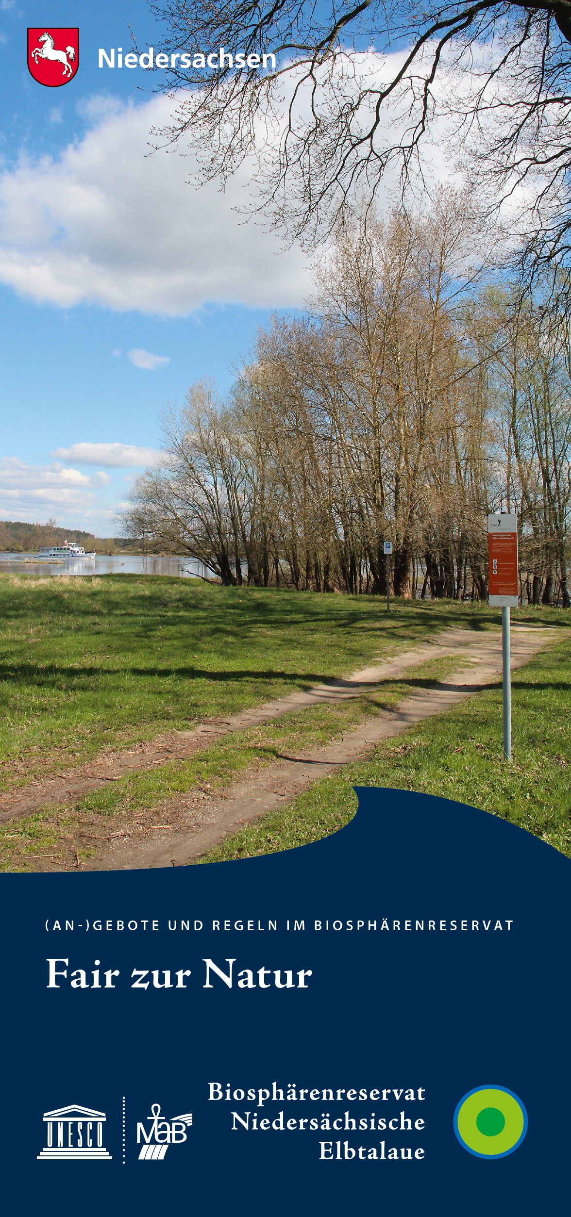 Ein neues Faltblatt der Biosphärenreservatsverwaltung zeigt unter dem Thema „Fair zur Natur – (An-)Gebote und Regeln im Biosphärenreservat“ die vielfältigen Anlaufpunkte zum Erleben der Natur im Biosphärenreservat. Darüber hinaus werden, wo erforderlich, die Regeln für den Aufenthalt in Natur und Landschaft erläutert. Das Faltblatt ist in Kürze bei der Biosphärenreservatsverwaltung Niedersächsische Elbtalaue, Am Markt 1, 29456 Hitzacker, Tel. 05862-9673-0, E-Mail: info@elbtalaue.niedersachsen.de erhältlich.