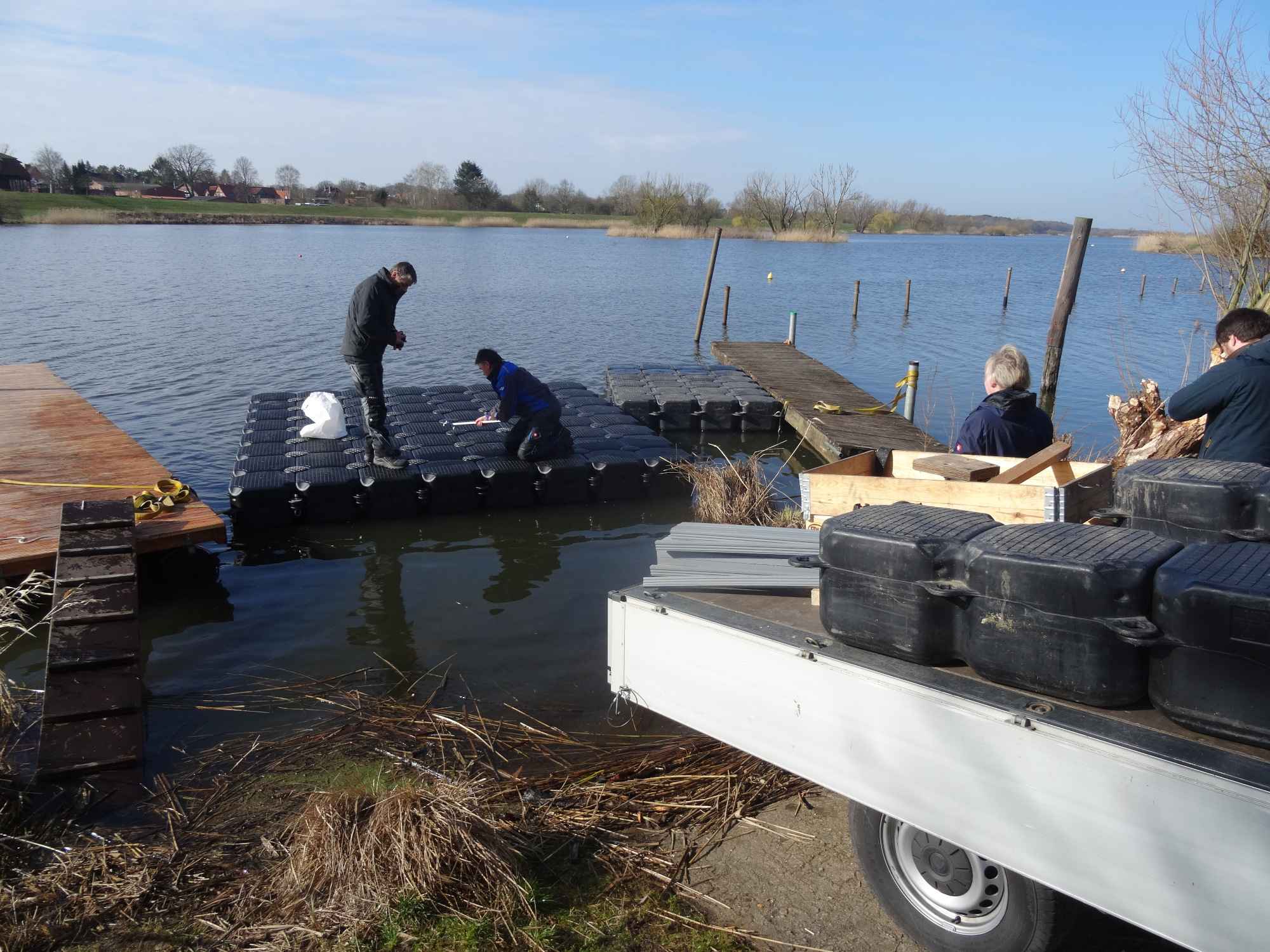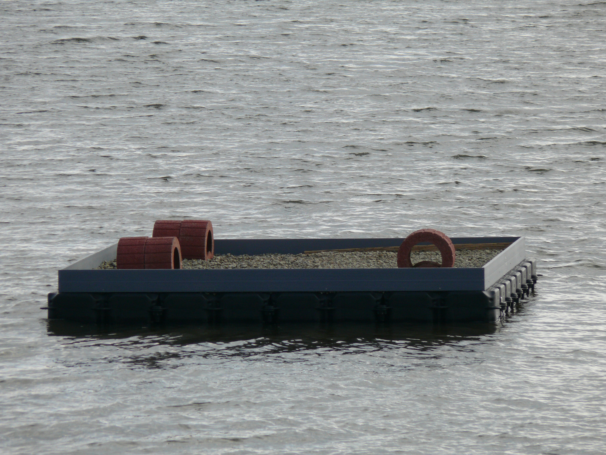 Durch das Nistfloß soll sich dies ändern: Seine schwimmende Lage verschafft den Vögeln Sicherheit vor Füchsen, Waschbären und Mardern. Die Kiesfläche ist groß genug für mehrere Brutpaare der am Boden und in Kolonien brütenden Tiere. Kleine Betonröhren bieten dem Nachwuchs, der ca. drei Wochen nach der Eiablage schlüpft und nach weiteren vier Wochen flügge ist, Versteckmöglichkeiten vor Greifvögeln.