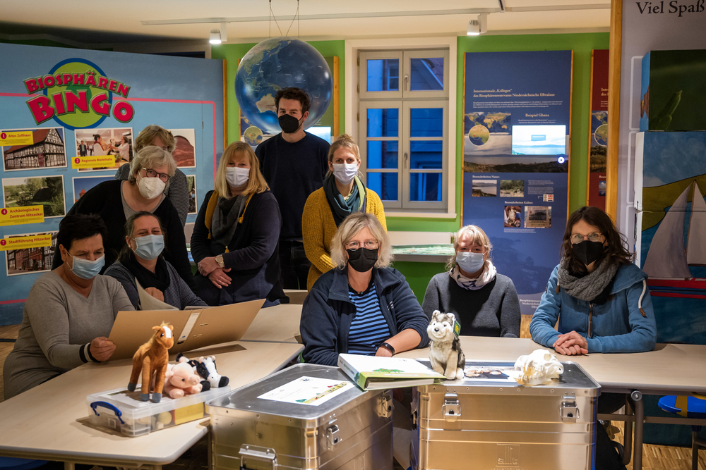 Bildung für nachhaltige Entwicklung (BNE) und Umweltbildung werden immer wichtiger, um Kindern und Jugendlichen Orientierungshilfen zum Verständnis und zur Bewältigung von drängenden Zukunftsausgaben, zum Beispiel dem Rückgang der Artenvielfalt, zu geben. Die Bildungskoffer zu den Themen „Wolf“ und „alte Haustierrassen“ bieten hierzu gute Ansätze. An der im September eröffneten Informationsstelle für das Biosphärenreservat in Dannenberg, können sie fortan ausgeliehen werden. Das Schulische Umweltbildungszentrum in Lüneburg, kurz „SCHUBZ“, hat die Materialien im Auftrag der Samtgemeinde Elbtalaue für Grundschulen und den Einsatz im Sachunterricht konzipiert. Spielerisches Lernen steht dabei im Vordergrund. So müssen etwa Bilder von Wölfen und Hunden sortiert, Wolfs - Gerüche erkannt oder alte Haustierarten erraten werden.