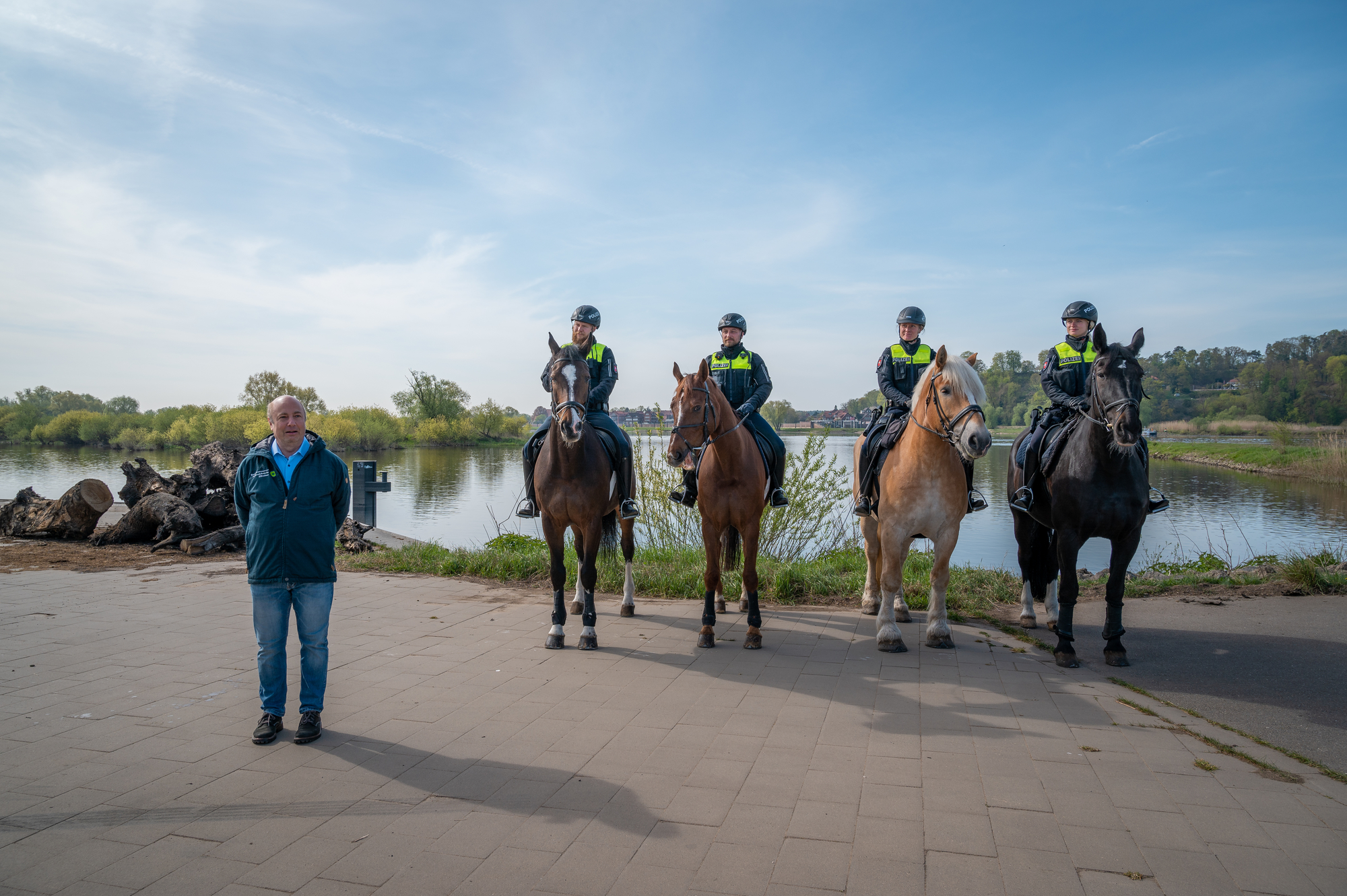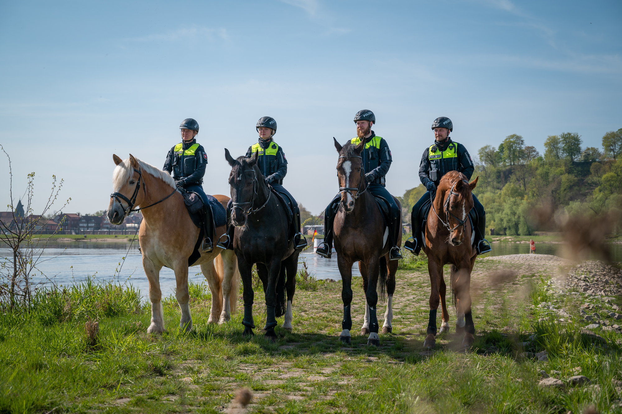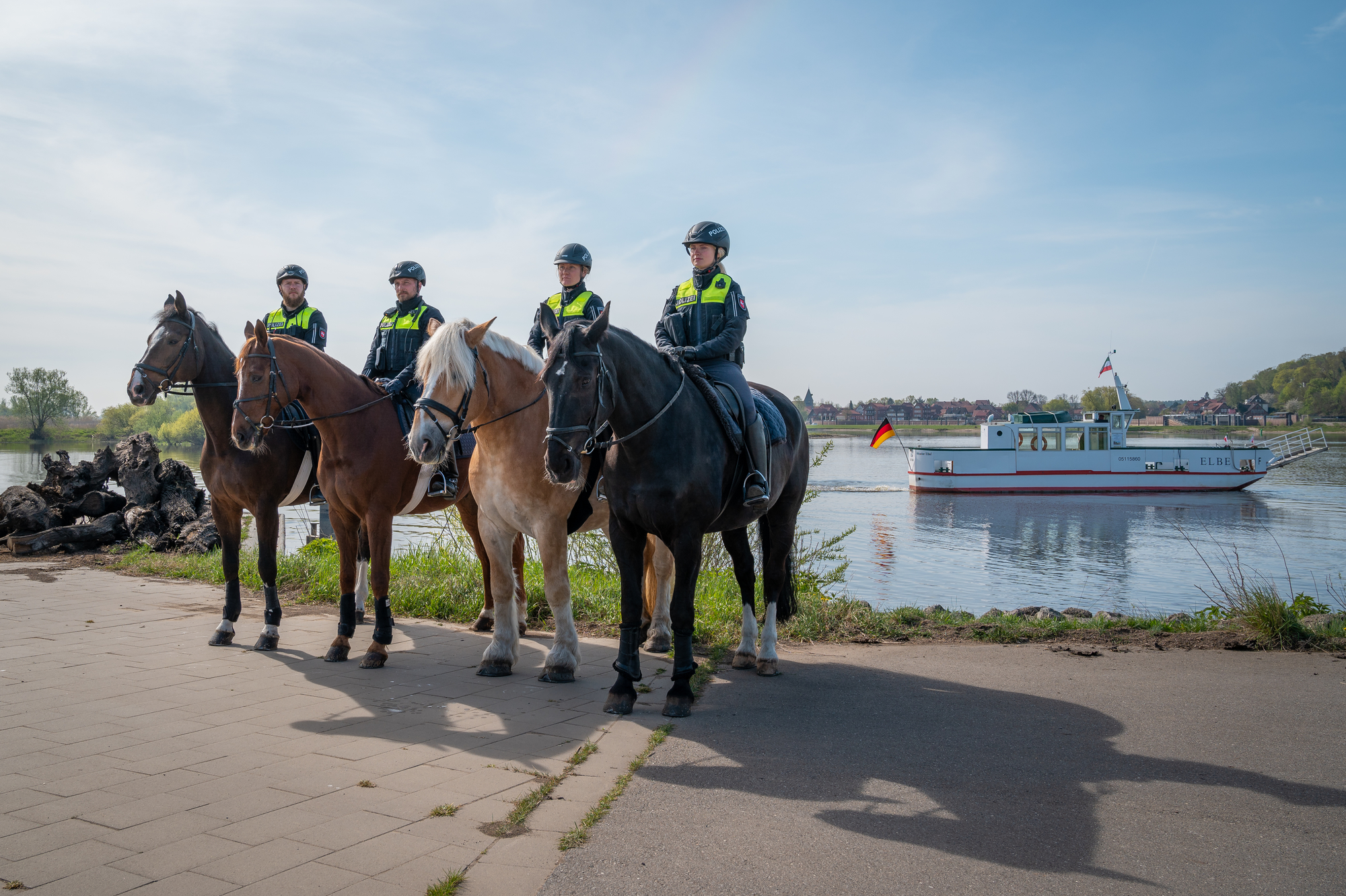 Auch in diesem Jahr bewahren wieder Polizeireiter*innen die Natur der Elbtalaue vor Störungen und stehen den Bürger*innen bei Fragen zur Verfügung