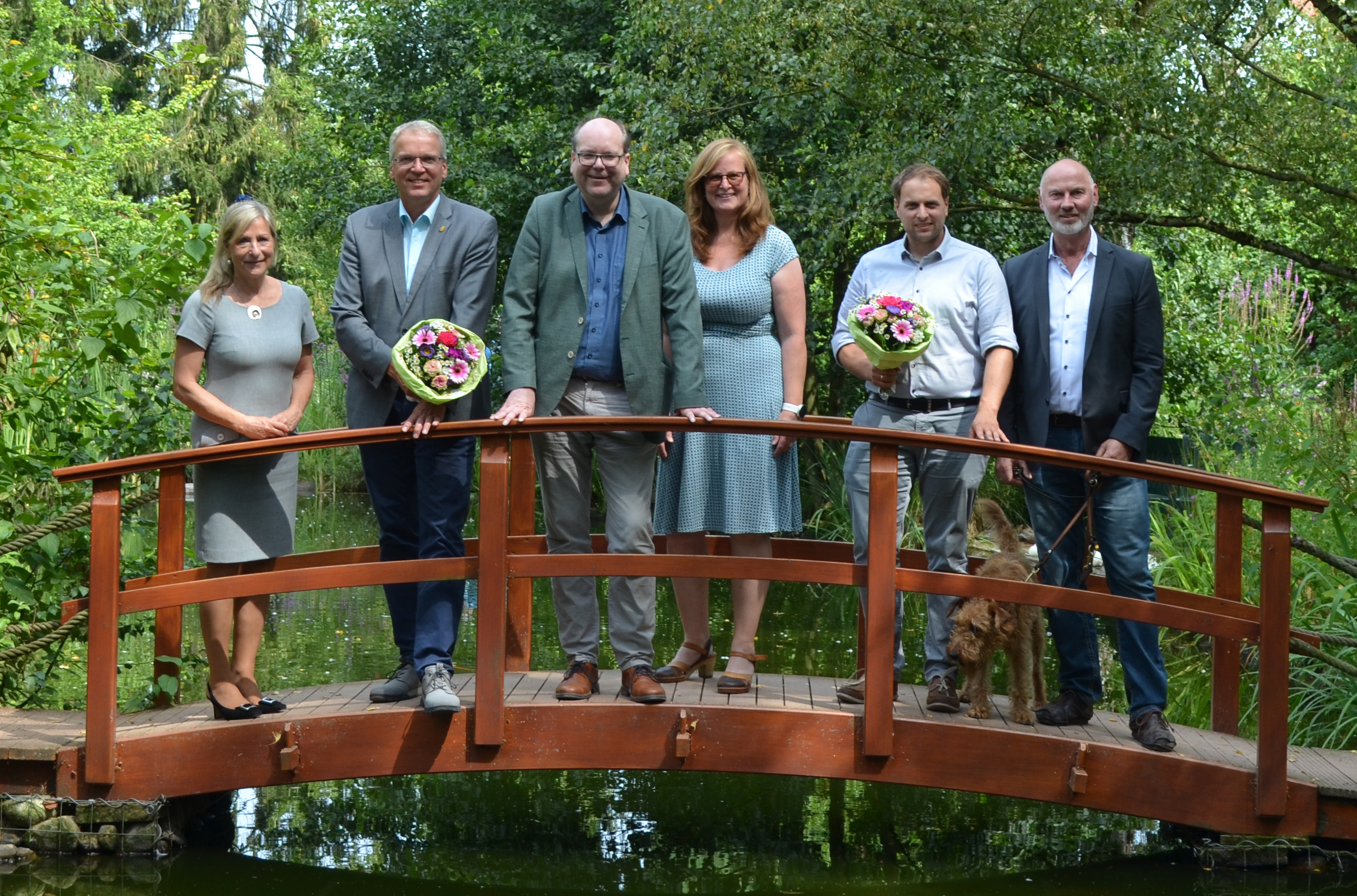 Die Beiratsvorsitzenden Jens Böther und Johannes Heuer (2. u. 5.v.l.) mit Umweltminister Christian Meyer (3.v.l.) und Dirk Janzen, Leiter der Biosphärenreservatsverwaltung (r.) sowie Landrätin Dagmar Schulz und Sonja Papenfuss, Abteilungsleitung MU