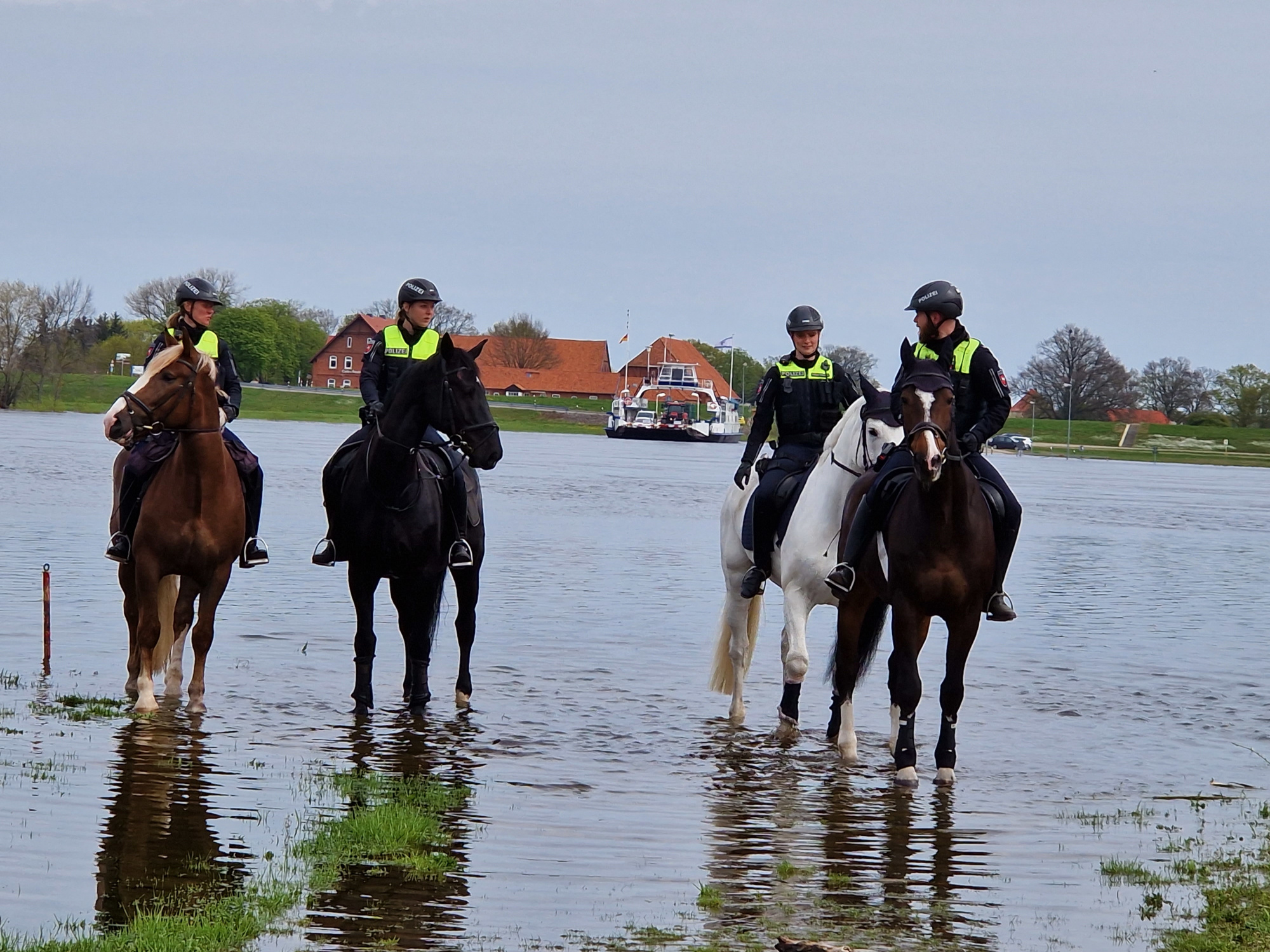 Polizeireiterinnen und Polizeireiter in der Elbtalaue