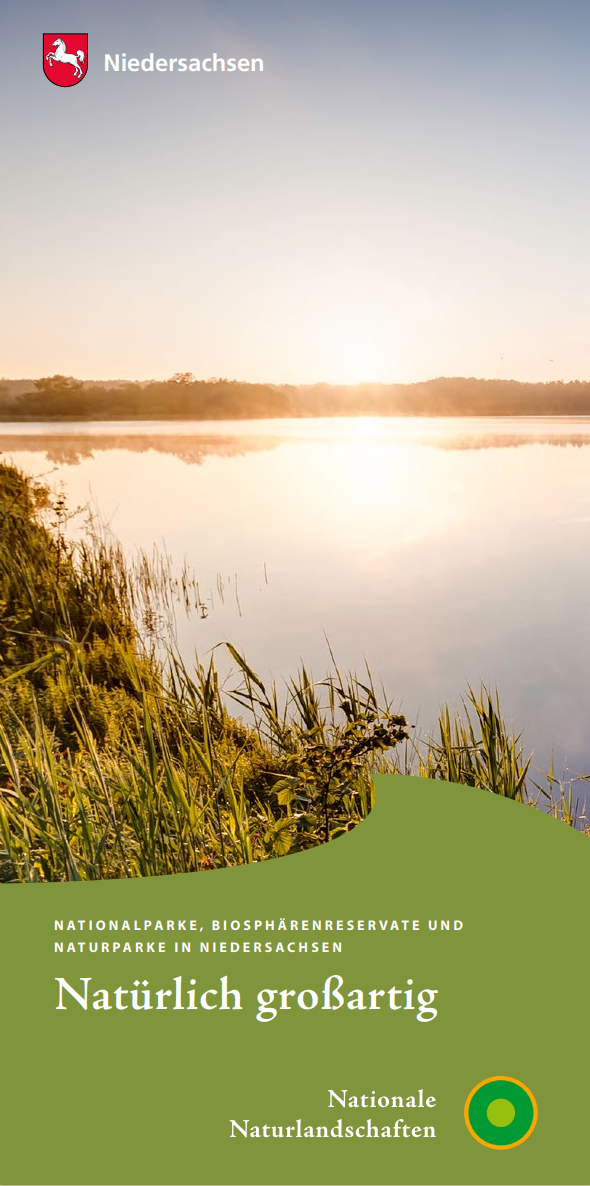 Mit der Broschüre „Natürlich großartig – Nationalparke, Biosphärenreservate und Naturparke in Niedersachsen“ verschaffen Sie sich einen ersten Überblick über die 17 niedersächsischen Naturlandschaften. Das Heft steht rechts in der Infospalte zum Download zur Verfügung.