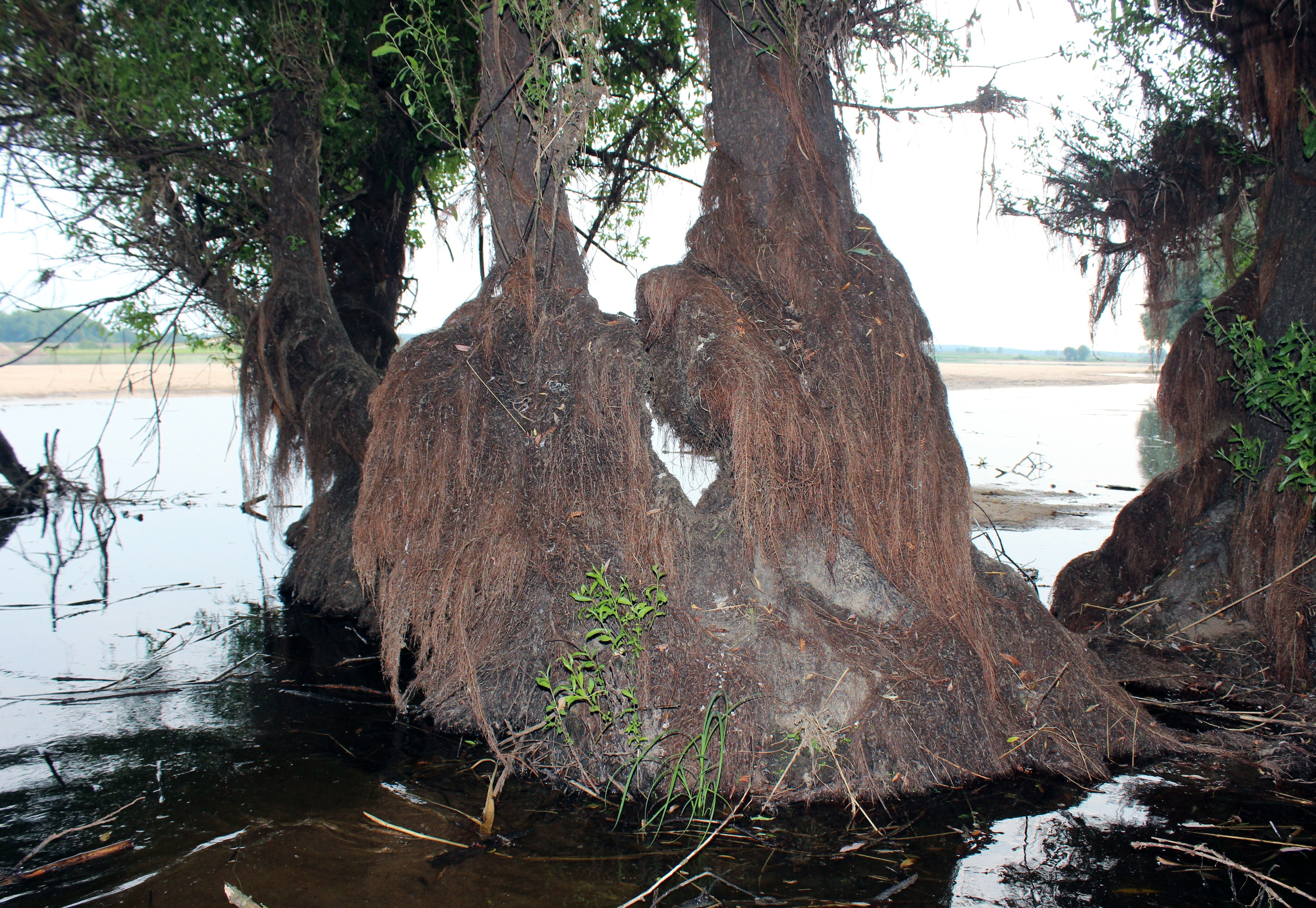 Die Luftwurzeln an Weiden bilden sich, wenn sie länger unter Wasser stehen.