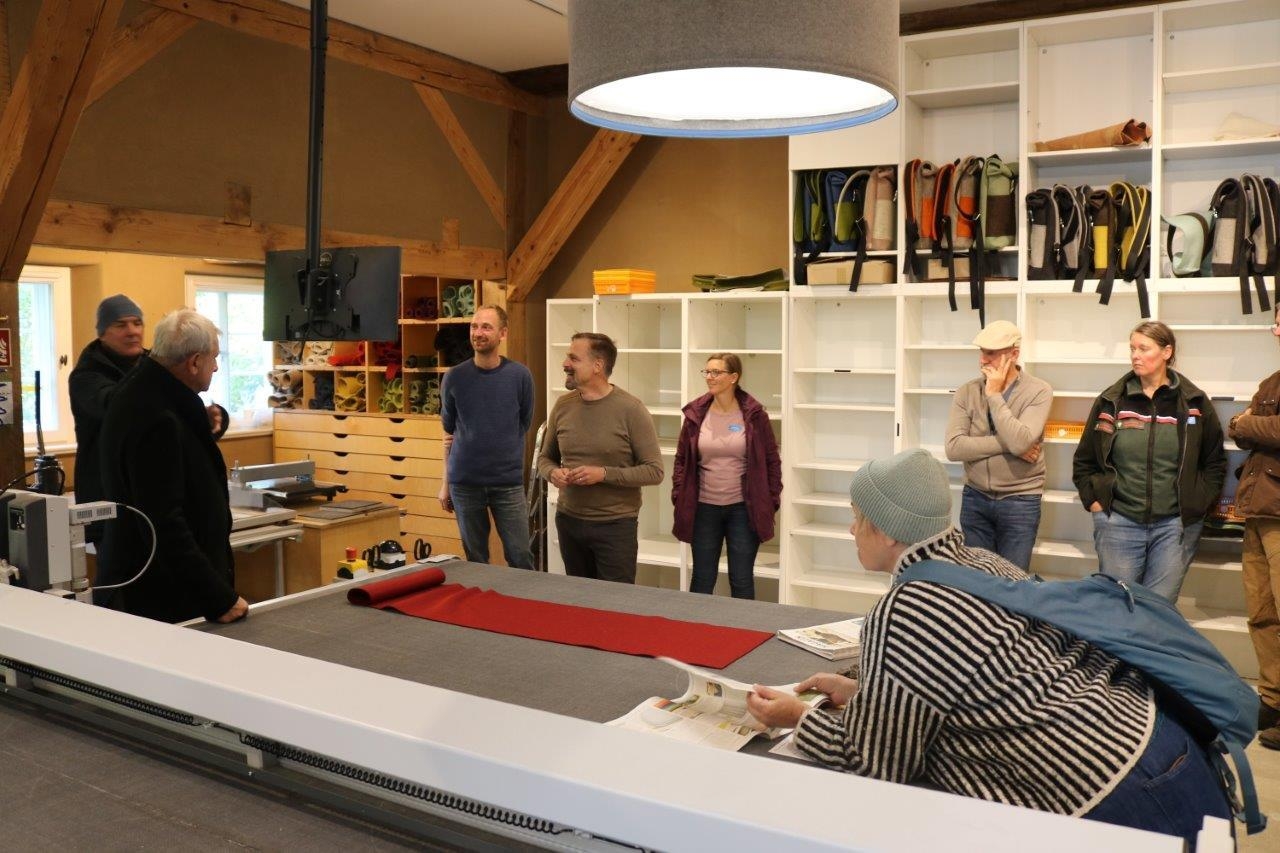 Anschließend öffnete der Partner „eigengut“ seine Türen. Dort entstehen individuelle Filzprodukte (100 % Wolle), die in Handarbeit gefertigt werden. Verarbeitet wird ausschließlich heimische Wolle von Partnerschäfereien aus ganz Deutschland, deren Schafe zugleich in der Landschaftspflege eingesetzt werden – ein gelungenes Beispiel für nachhaltiges Handwerk.