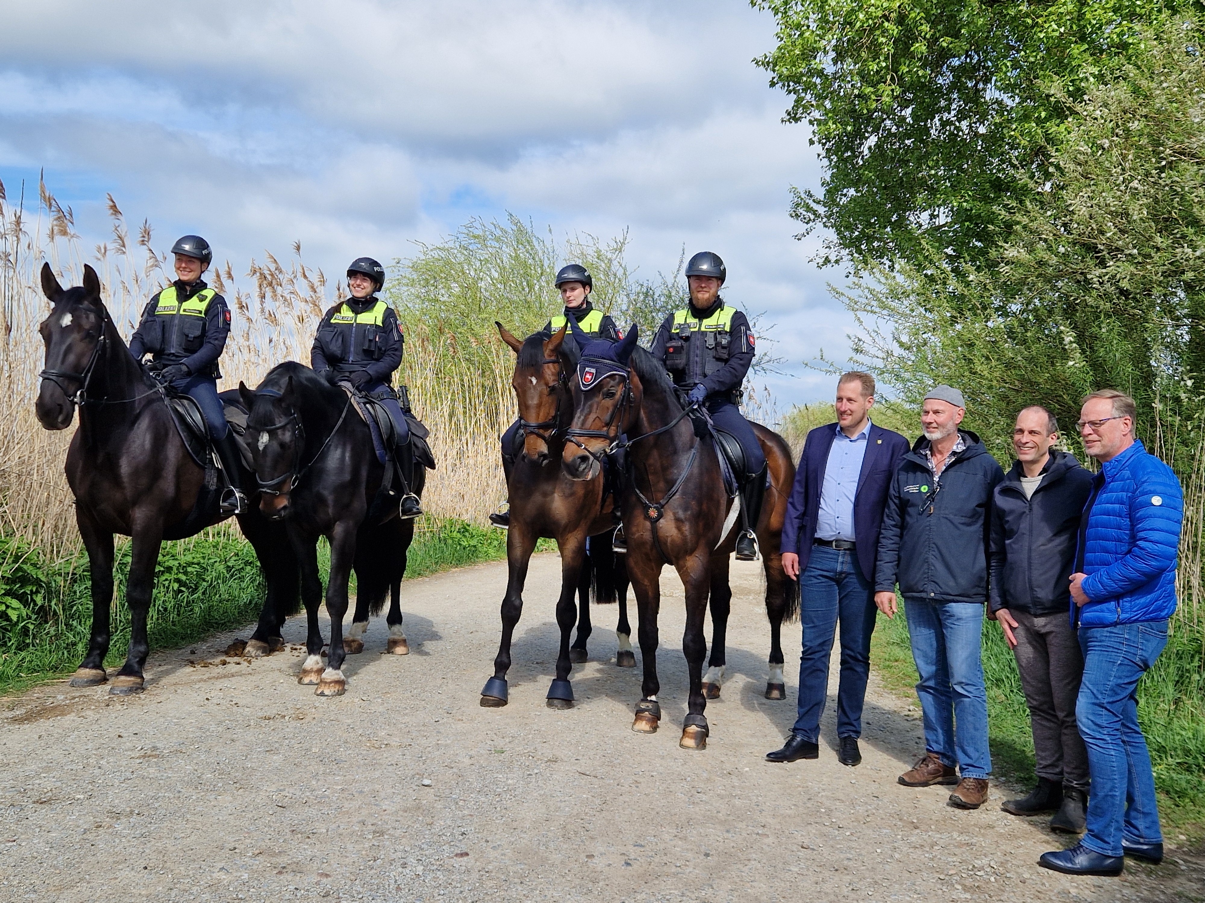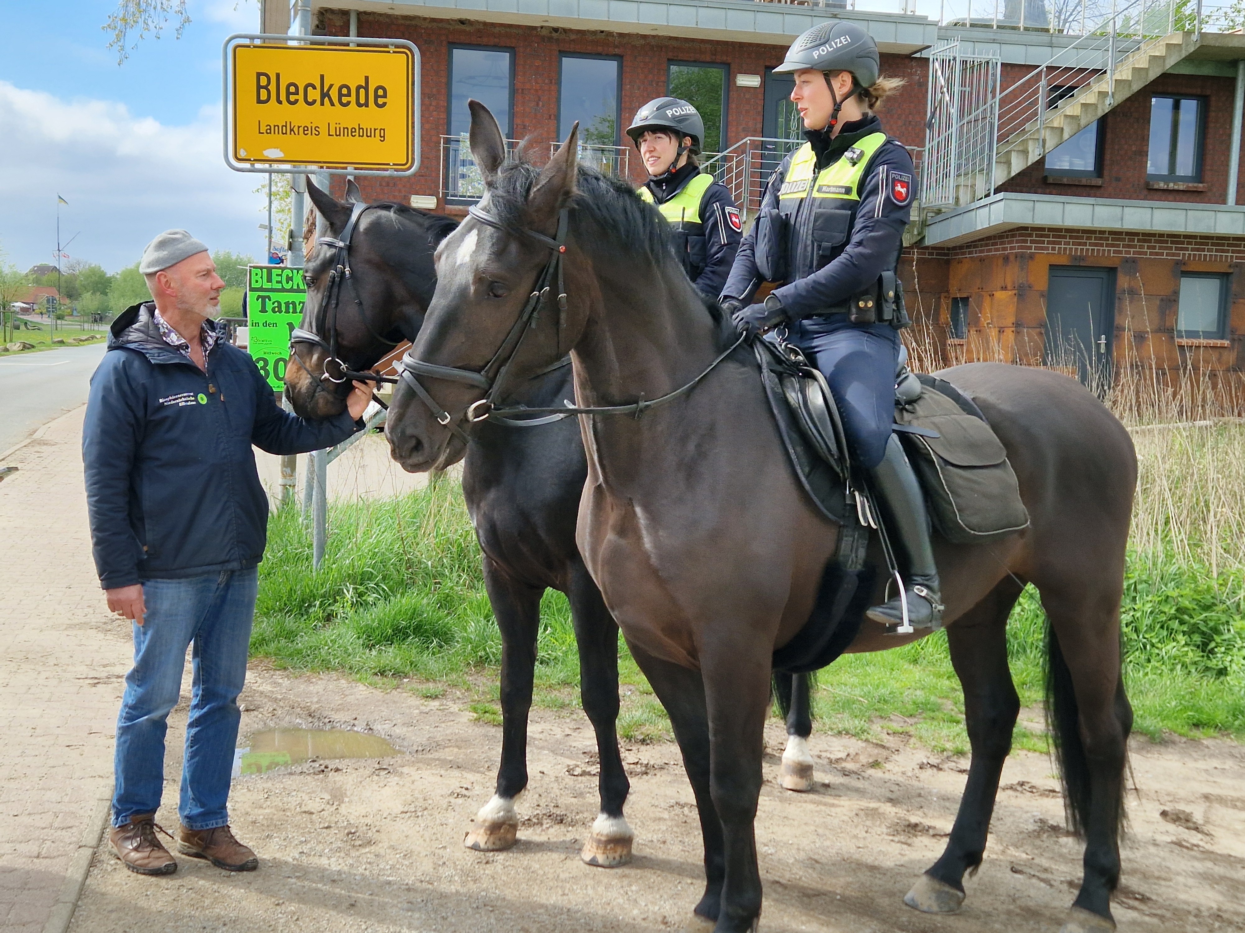 Von Ende April bis in den späten August sind die Polizeireiterinnen und Polizeireiter flankierend auch als kompetente Ansprechpartner für Einheimische und Besucher der Elbregion in den Landkreisen Lüneburg und Lüchow-Dannenberg im Einsatz und tragen gerade in der sensiblen Phase der Brut- und Setzzeit in den Schwerpunkträumen der Elbtalaue dafür Sorge, dass die vielfältige Tierwelt nicht unnötig gestört und die Ruhe in der Landschaft erhalten bleibt.
