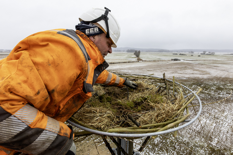 Zum Versorgungsgebiet der WEMAG Netz gehört auch die Gemeinde Amt Neuhaus. „Im vorigen Jahr hat erstmalig der in Niedersachsen nach wie vor seltene Fischadler im Biosphärenreservat ,Niedersächsische Elbtalaue‘ auf einem Mast der WNG, der sich in einem besonders schutzwürdigen Gebiet in der Nähe von Pinnau befindet, gebrütet. Dieser Horst geriet im Sommer 2025 in Brand, wobei zu dem Zeitpunkt die Jungvögel bereits ausgeflogen waren“, berichtet Dr. Franz Höchtl, stellvertretender Leiter der Biosphärenreservatsverwaltung.