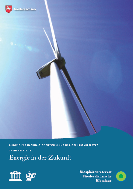Wer träumt nicht von Energie, die nicht versiegt? Sonne, Wind, Erdwärme, Wasser und Biomasse bieten sich zunehmend als Energieträger für Wärme, Strom und Kraftstoffe an. Fossile Rohstoffe wie Erdöl, Erdgas und Kohle als Energielieferanten werden hingegen knapper und teurer. Zudem tragen sie mit ihrem Ausstoß von CO2 zum anthropogen bedingten Treibhauseffekt bei. Die Zusammenhänge zwischen Energieproduktion und Biosphärenreservaten werden in diesem Themenblatt dargestellt. Stichwortartig wird das Thema allgemein umrissen und für die Elbtalaue besonders konkretisiert. Projektvorschläge und Hinweise zur Integration des Themenbereichs in eine Bildung für nachhaltige Entwicklung (BNE) regen zur eigenen Initiative an. Das Themenblatt 10 ist eng verzahnt mit dem Themenblatt 9 „Klimawandel“. Weitere Querbezüge sind im Text ersichtlich.