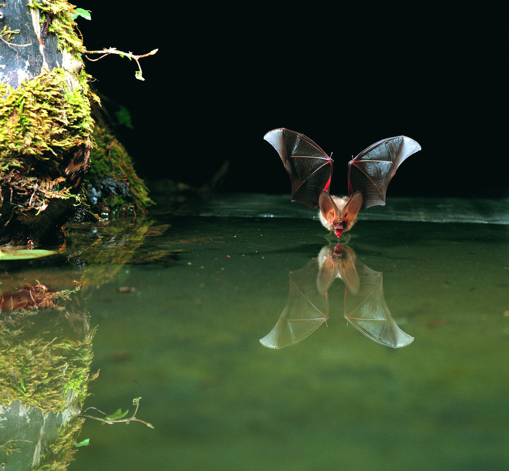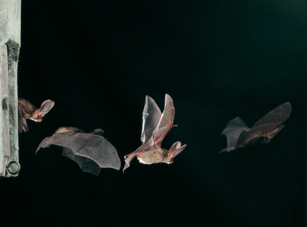 Die großen Ohren helfen der Fledermaus nicht nur beim Hören, sondern auch beim „Sehen“. Durch ihren Mund oder die Nase stoßen die Tiere Ultraschall-Rufe aus. Diese werden zum Beispiel von der Beute, aber auch von ihrer Umgebung, reflektiert und von den Ohren wieder aufgenommen. So entsteht für die Fledermaus in Sekundenschnelle ein „Bild“ ihrer Umgebung. Hierdurch weiß sie genau, wo sie ihre Beute finden kann.