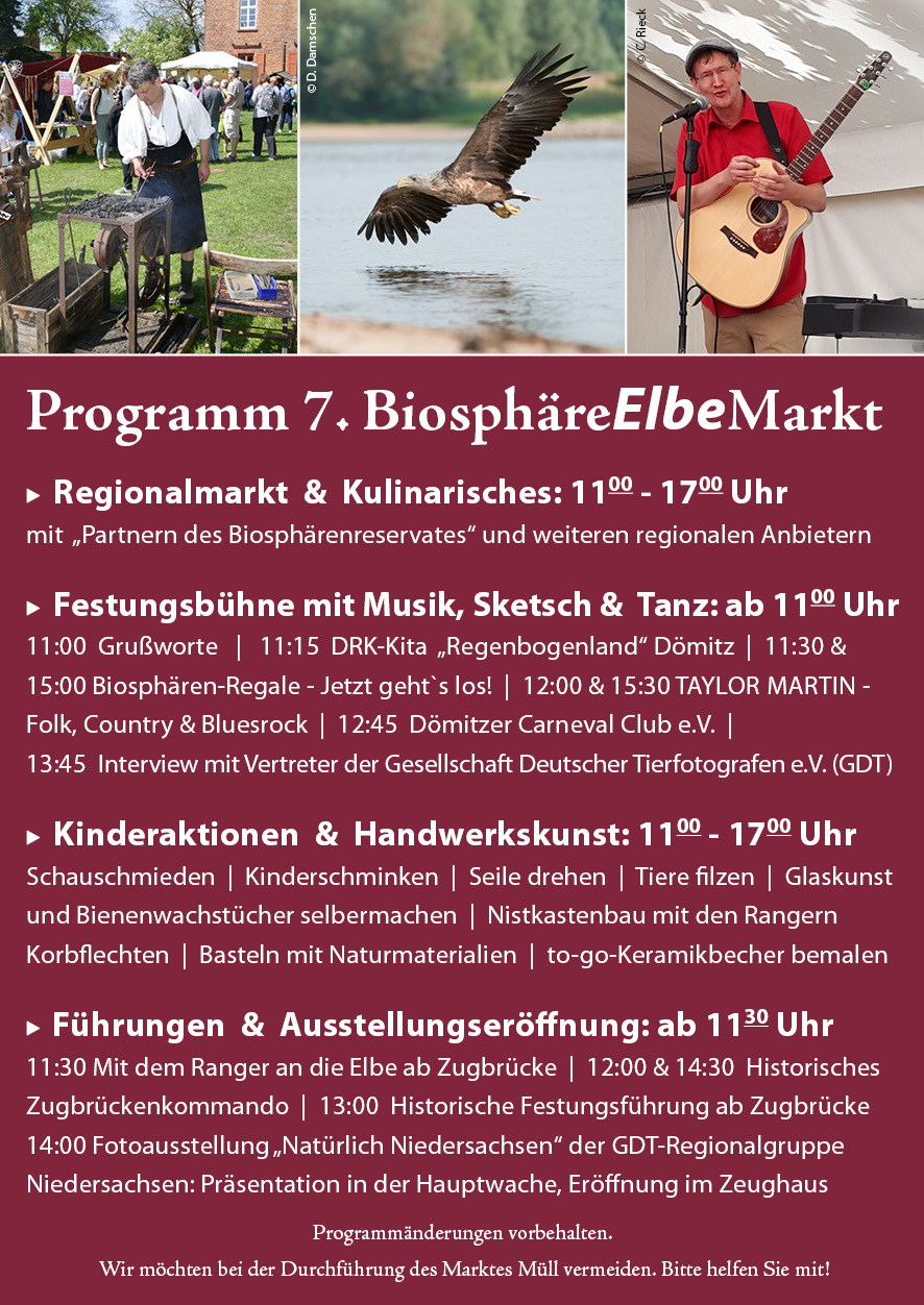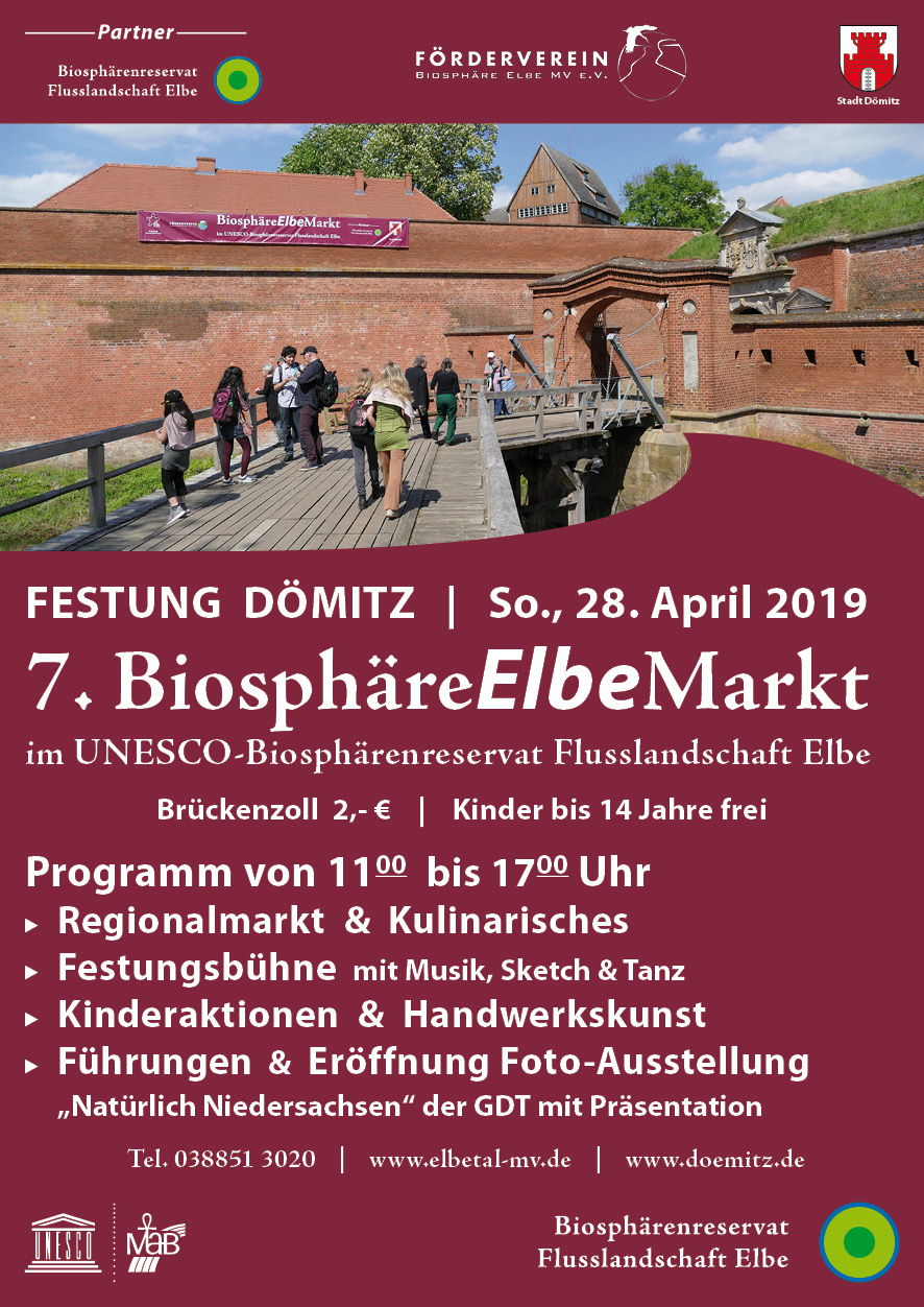 Bereits zum siebten Mal läd die Stadt Dömitz und das Biosphärenreservatsamt Schaalsee-Elbe auf die Festung Dömitz ein. Über 60 Marktstände, Handwerker und und Aktionsstände für Groß und Klein können besucht werden.